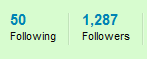 relevancy and dropped the ones that had been unresponsive to our attempts to engage and those that weren’t relevant to our business. Then we decided, what if we only keep those we either get great info. from or that we actively engage with? This left us following about 50. The amazing thing was that we only lost 17 followers after the purge. Even better, as time has passed, it seems we are getting more organic followers than before. This may be because we have a much more favorable following/follower ratio: 50/1287. Many tend to see a low following/follower ratio as an indicator of popularity and integrity, which also means less spam.